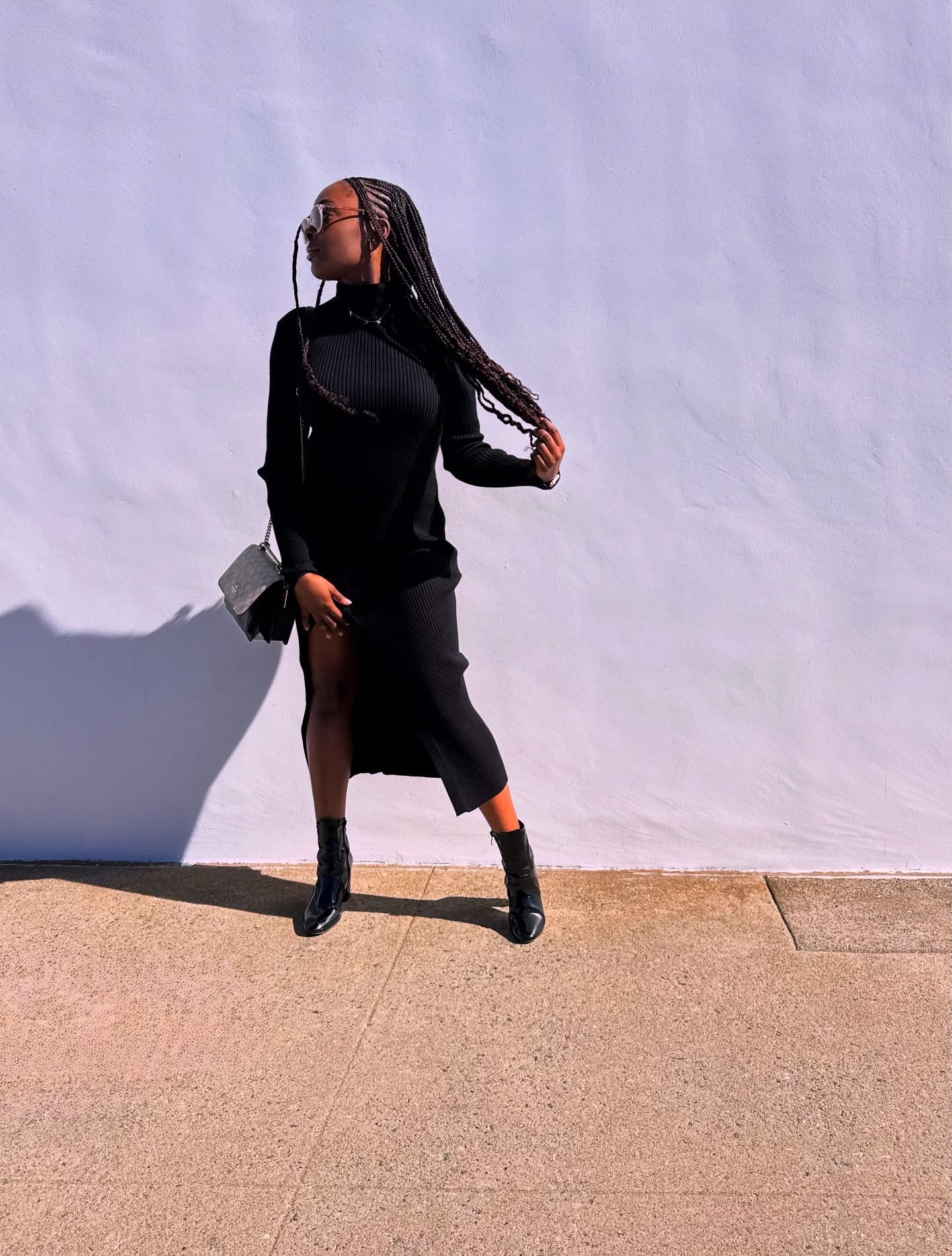 Cierra Side Split Knit Dress - Black